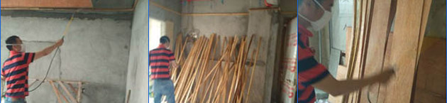 1、開工前對所有可能與木料接觸的墻體部位進行噴藥(具體指窗套、門套、墻裙、堤角線、各類柜子與墻接觸的墻面);墻體無木料部位噴1米以下!